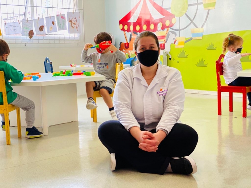 Nosso retorno está sendo muito tranquilo, as crianças felizes, se readaptando muito bem. E o que me marca muito como educadora são os sorrisos. Sorrisos?